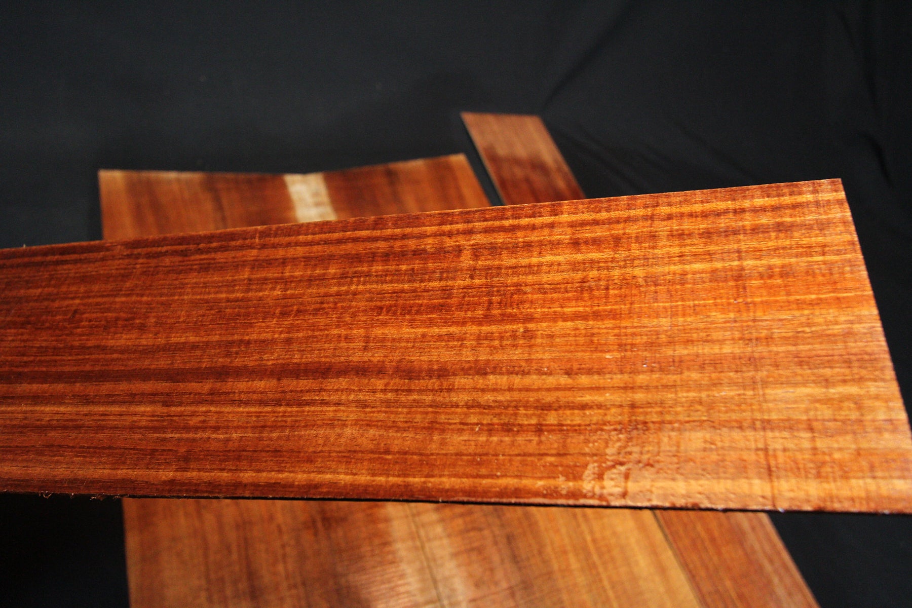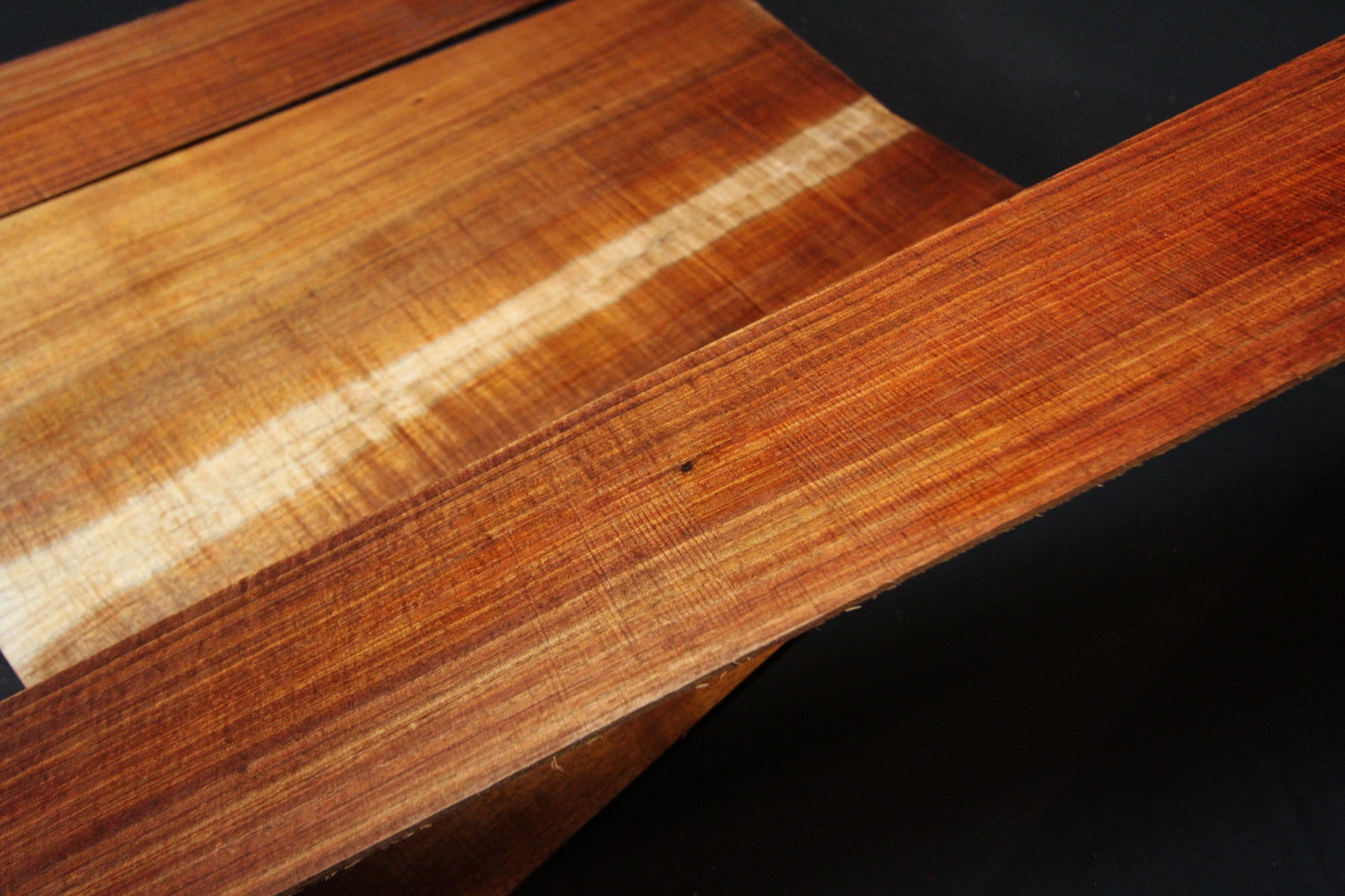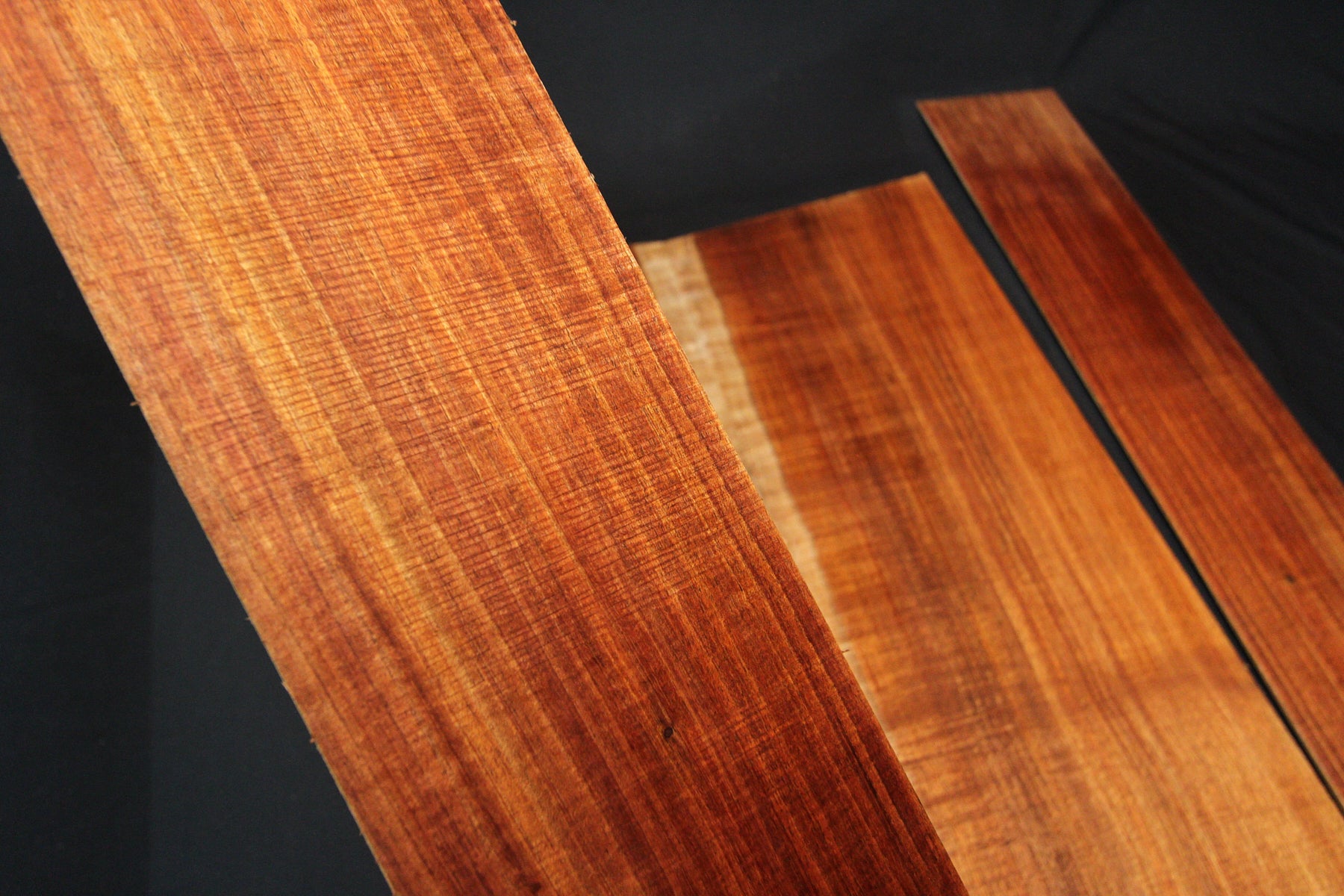 Tasmanian Blackwood with Mild Figuring, lovely dark orange and red colouring, with exceptional character that will make an outstanding acoustic guitar. Some sets may or may not have the solid white sap edge. Please note preference when purchasing.